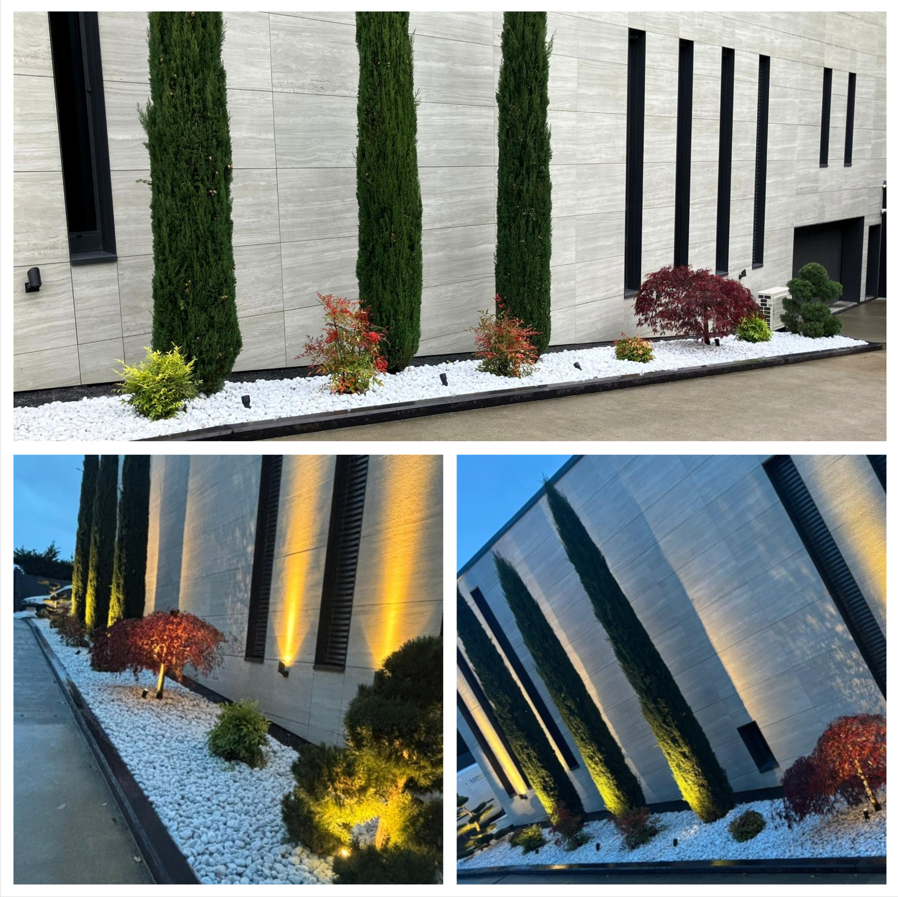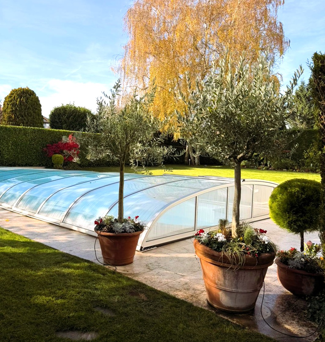 Pose gazon en rouleaux, arrosage auto et création de massifs