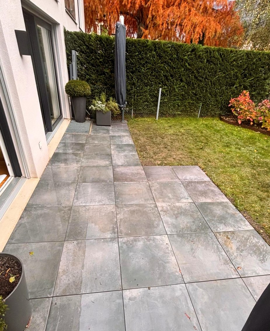 Création de tarrsse grés cérame et bois - pose abris de jardin